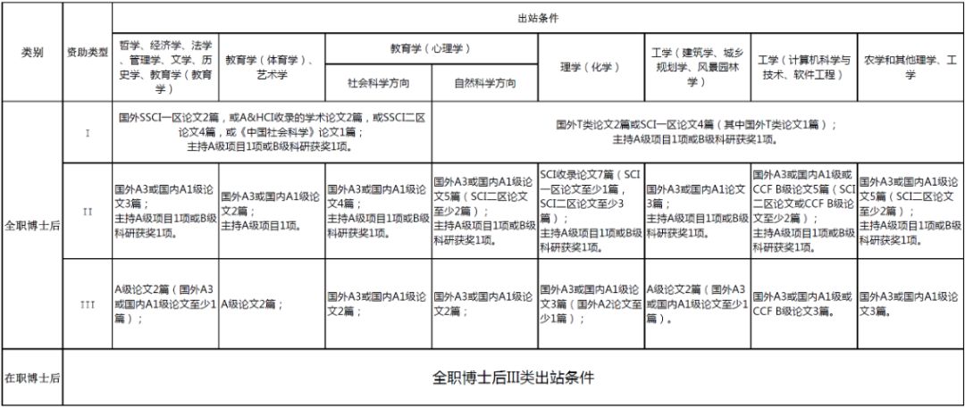 3.出站时西南大学根据工作绩效(博士后出站条件分为Ⅰ、Ⅱ 、Ⅲ,具体见文尾)发放津贴。满三年出站达到Ⅰ类出站条件学校一次性给予71.2万元(满2年出站80.8万);达到Ⅱ类出站条件一次性给予31.2万(2年出站40.8万);达到Ⅲ出站条件一次性给予1.2万(2年出站10.8万)。在2-3年期间出站的,按照实际在站时间、出站类别及相应类别学校提供经费核算。按照全职博士后达到Ⅰ类、 Ⅱ 类出站条件的,通过学校师资选留程序优先留校工作,并按照引进人才类型享受相关待遇。