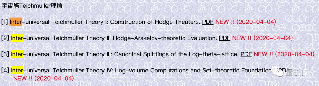 望月新一发表了4篇论文来证明这一猜想,他把自己的研究成果叫做“宇宙际Teichmuller理论”。