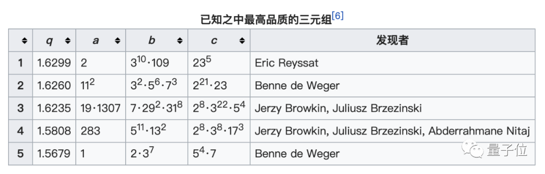 在人类短期内没法证明的abc猜想的情况下,科学家们想到了一个办法,就是用计算机暴力解决,从小到大依次寻找符合abc猜想第二种情形的组合。