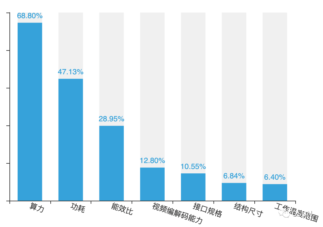 近年来兴起的以深度学习为代表的人工智能技术已经成为刚需,并且正在重塑整个芯片产业。33.86%的开发者表示,他们生产的芯片搭载了人工智能技术。68.8%的开发者会关心芯片的算力,其次是芯片的功耗,占47.13%。
