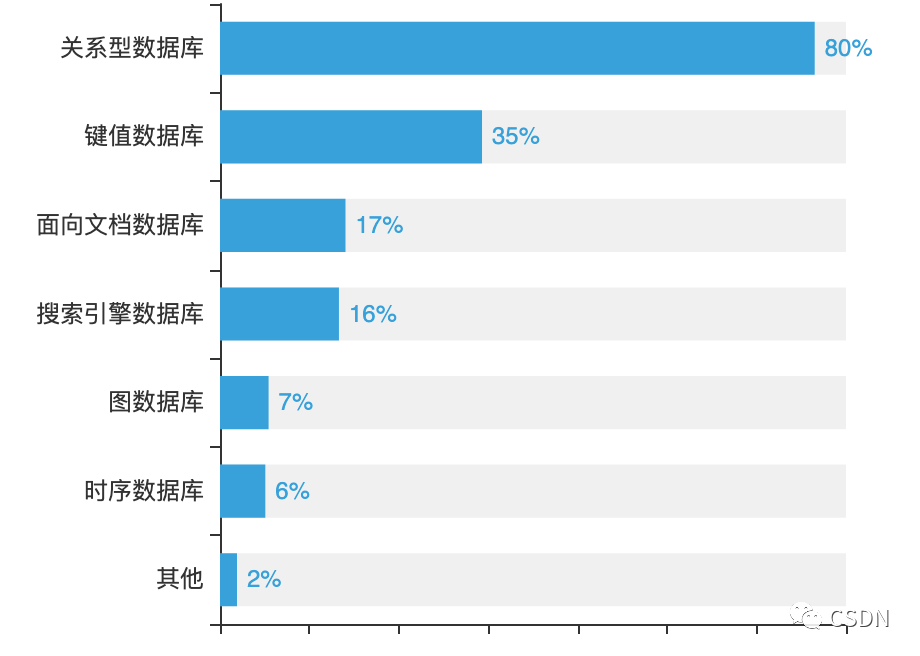 另外,数据库种类颇多,80%的开发者表示关系型数据库依然是最常用的数据库类型,而多用于互联网应用的键值数据库、文档数据库、搜索引擎数据库、图数据库合并占比53%,表明新型应用正在茁壮成长。