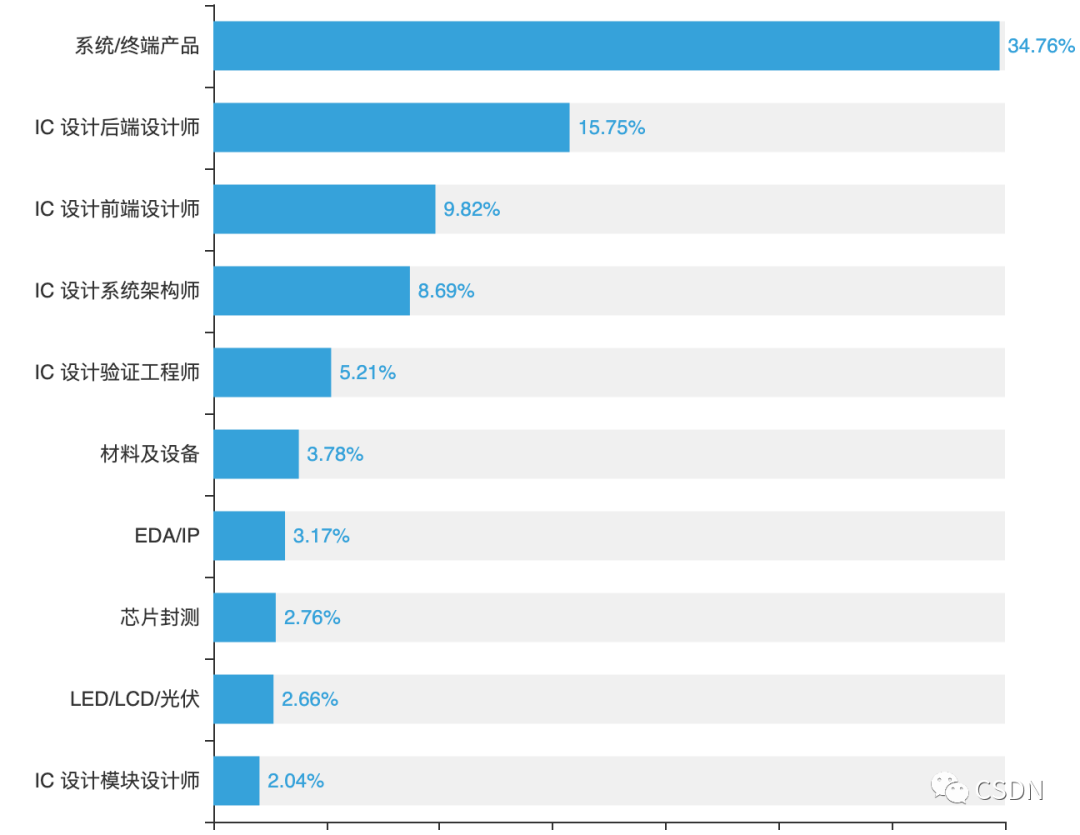 尽管有关芯片开发的岗位众多,其中在系统/终端产品方向的开发者最多,占比34.76%,其次是占比15.75%的IC设计后端设计师。但国内核心高端芯片人才的极度匮乏已经成为行业发展的重要瓶颈。62.69%的受访者认为国内最稀缺的是芯片架构师,这是符合现状的。