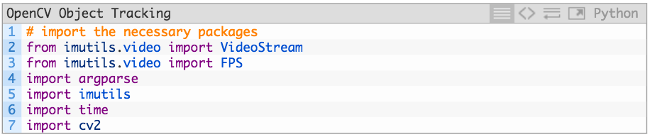 想要用OpenCV进行目标追踪,首先打开一个新文件,将它命名为opencv_object_tracker.py,然后插入以下代码: