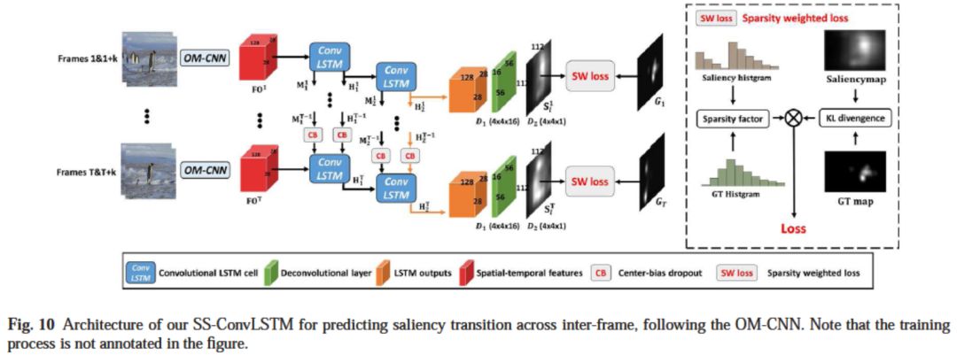 构造了动态结构 SS-ConvLSTM 用于预测视频显著性的帧间转移,同时考虑到了显著性的稀疏先验和中心先验。