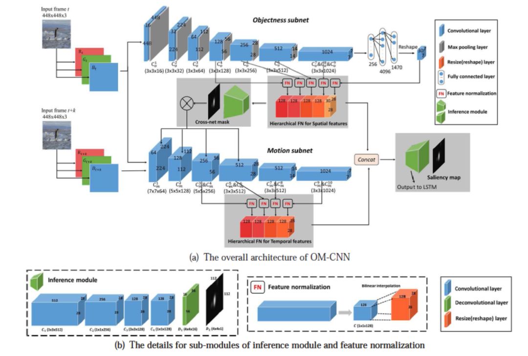 构造了基于运动物体的静态结构 OM-CNN 用于检测帧内显著性;