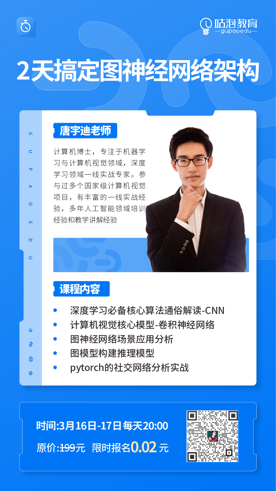 上课时间:3月16日-17日,每晚20:00-22:30