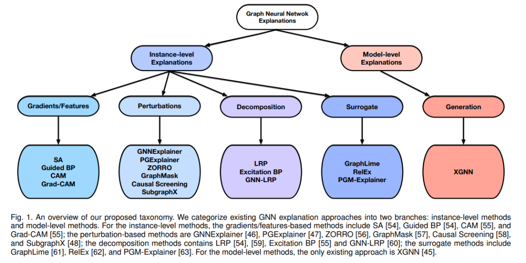 我们对现有的GNN解释技术提出了一个新的分类方法。我们总结了每个类别的关键思想,并提供了深刻的分析。