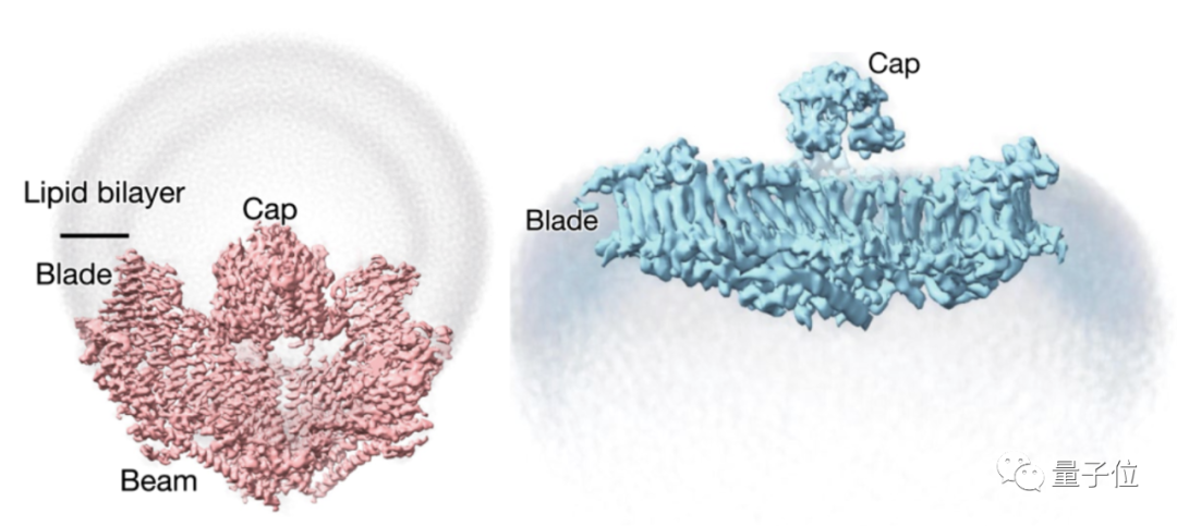 最终,研究人员得到PIEZO1在膜上收合状态和受力展平的两种结构,佐证了上述猜想。