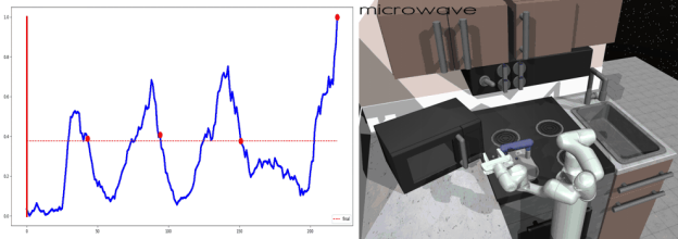 在 Kitchen 任务中,模型需要连续操控四个家电。