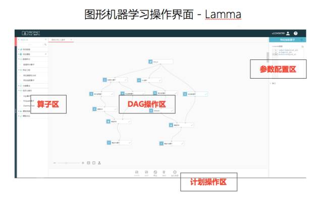 下图是类似于操作系统的先知界面,如果我们有一个TB级的原始数据,例如某银行历史年交易数据,里面可能覆盖了几千万条,甚至上亿条交易数据,其中包含了交易时所对应的人、卡与交易的信息,我们只要通过拖拽的方式做一个图(如下图),就能轻松实现一个完整的机器学习过程。