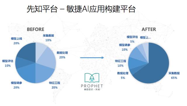 沿着这个思路,第四范式打造了先知平台,它可以大幅缩减数据工程师在数据处理、模型调参、模型评估以及上线方面的工作量,从而把大量的时间花在如何搜集有意义的数据上。
