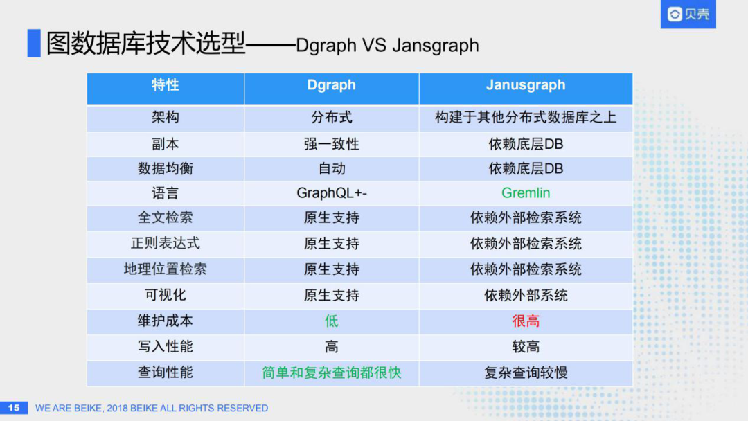 架构方面:Dgraph是分布式的,而JanusGraph构建于其他分布式数据库之上。