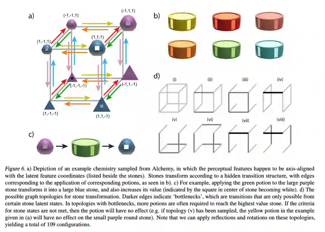 Alchemy具有“有趣”的结构,从某种意义上讲,它涉及潜在的因果关系组成的集合,并且需要策略性实验和动作排序。但是Alchemy的结构也是“可访问的”,因为游戏级别是根据明确的生成过程创建的。