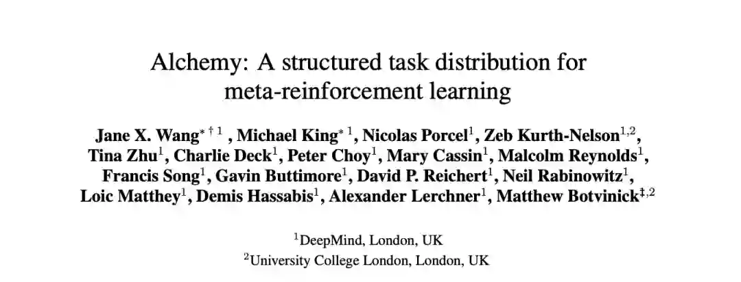 一种有前途的方法是元学习或学习学习(learning to learn)。这里的想法是,学习者可以从大量的经验中获得可用于目标的知识,并且随着知识的积累,学习者可以越来越快地适应遇到的每个新任务。在深度RL中开发元学习方法的兴趣迅速增长。尽管在“元强化学习”方面取得了实质性进展,但由于缺乏基准测试任务,这一领域的研究受到了阻碍。在当前的工作中,作者旨在通过引入(和开源)Alchemy(一种有用的meta-RL基准环境)以及一套分析工具来缓解此问题。