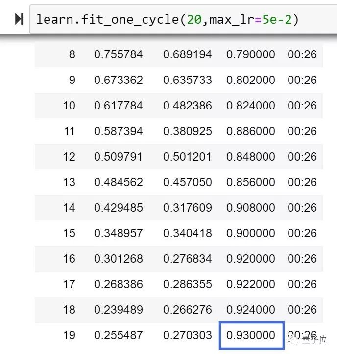 他在ImageNette上进行了测试,在128px,20epoch的测试中,Ranger的训练精度达到了93%,比目前FastAI排行榜榜首提高了1%。