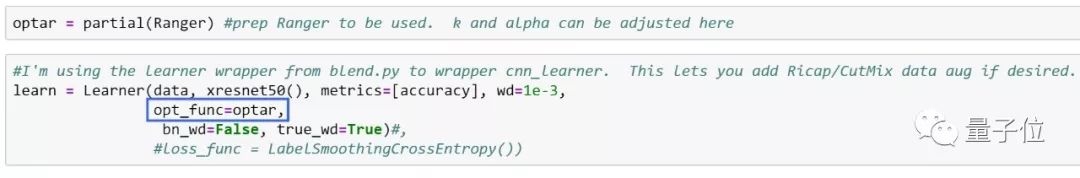 创建一个partial,准备在FastAI里使用Ranger,并将opt_func指向它。