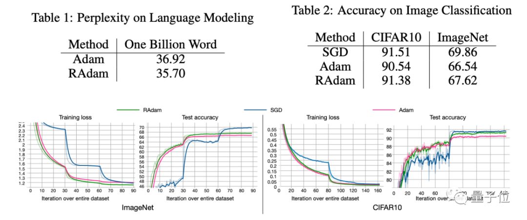 根据RAdam的特点,一旦方差稳定下来,在余下的训练阶段当中,RAdam基本等同于Adam和SGD。也就是说,RAdam的改进主要是在训练刚开始的时候。