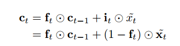 其中 f_t 和 i_t 属于 Sigmoid 门,它们分别被称为遗忘门(forget gate)和输入门。
