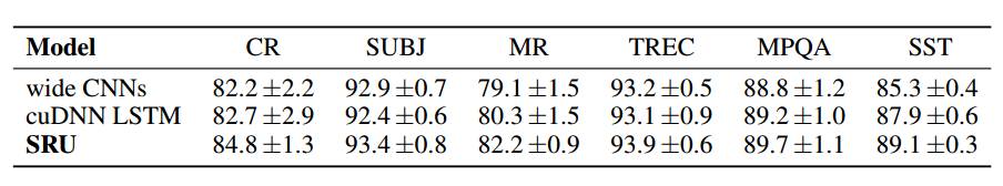 SRU 实现分类任务的代码:https://github.com/taolei87/sru/tree/master/classification