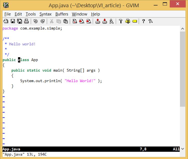 注意:Vim 具有语言感知功能,且其默认设置可以基于文件中的编程语言来改变配置以提高效率。有许多默认的配置选项,包括 axs cindent,cinoptions,indentexpr 等,没有在这里说明。 syn 是一个非常有用的命令,用于设置文件的语法以更改显示模式。