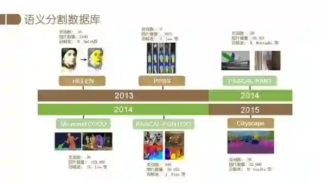 2013年针对人脸分割的Helen分割数据集发布,同年发布的还有香港中文大学的人体分割数据集PPSS。随后,2014年发布的PASCAL PART将PASCAL VOC中物体的部位进行细分,提供了更加细致的分割标注。