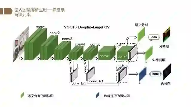 具体来说,在给定输入的图片之后,我们先用一个基于VGG16的Deeplab-LargeFOV模型提取特征。此外,我们加入了两个1x1的卷积对con4和conv5的特征进行提取以得到图像的边缘信息,之后再将边缘信息与语义分割的结果进行融合,得到最终的分割结果。