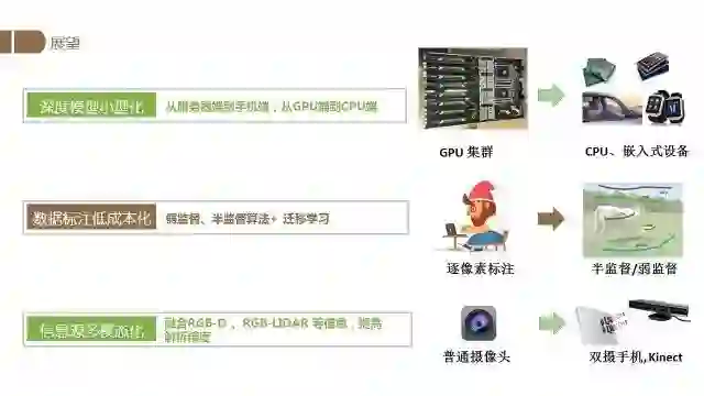 首先是模型的小型化,未来深度学习的模型将逐渐从计算、储存能力丰富的GPU集群走向CPU平台或是嵌入式设备中,这对模型的大小以及计算复杂度都将有更严格的限制。