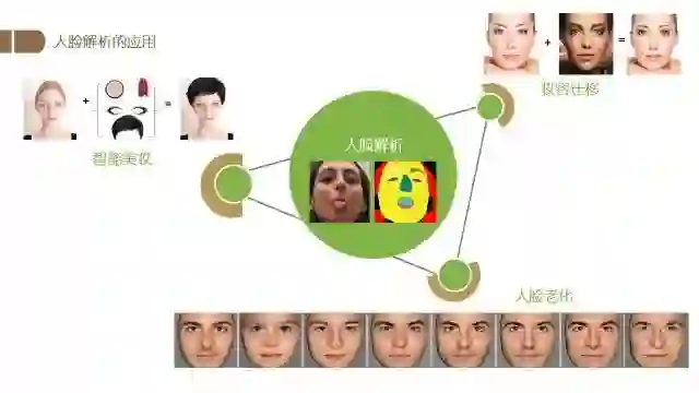 基于人脸解析,我们开展了多项工作。主要有智能美妆、妆容迁移、人脸老化三个工作。