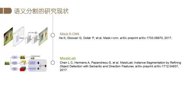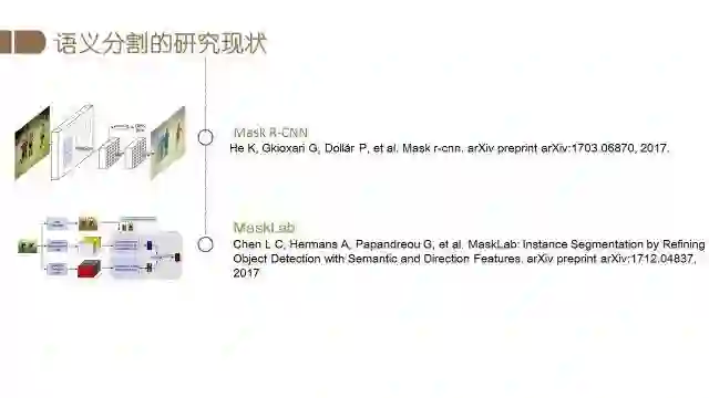 之后FAIR的Mask RCNN提出RoI Align层,在faster-rcnn的基础上实现了instance级的语义分割。随后Deeplab的改进版MaskLab提出一种新的方向特征,改进了instance级分割效果。回顾完语义分割的数据集以及常见算法。下面我们将介绍我们组在这方面的工作。
