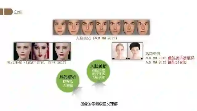 2、然后介绍了我们小组在人脸解析方面的工作,包括妆容迁移、人脸老化、智能美妆。