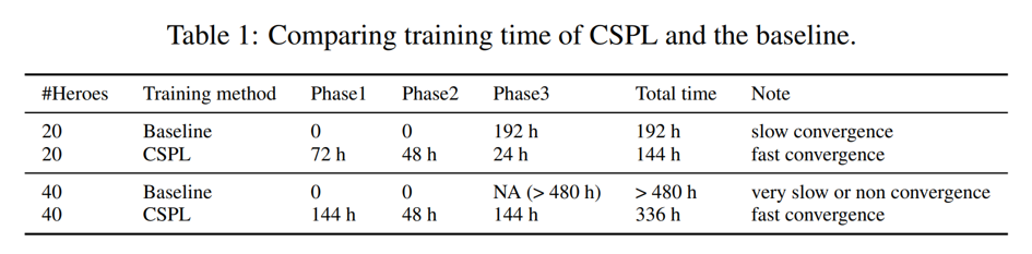 其次,团队研究出了拓宽英雄池,让“绝悟“掌握所有英雄技能的训练方法——CSPL(Curriculum Self-Play Learning,课程自对弈学习)。