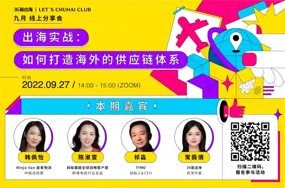 供应链作为商品流转的基础,既服务于消费者又服务于品牌建立。在东南亚基建新升级的背景下,36氪出海将于9月27日举办线上闭门分享会,邀请来自 Ninja Van、蚂蚁国际和 TYMO 的嘉宾,与诸位观众一起探讨,如何打造出海东南亚的优质供应链体系。