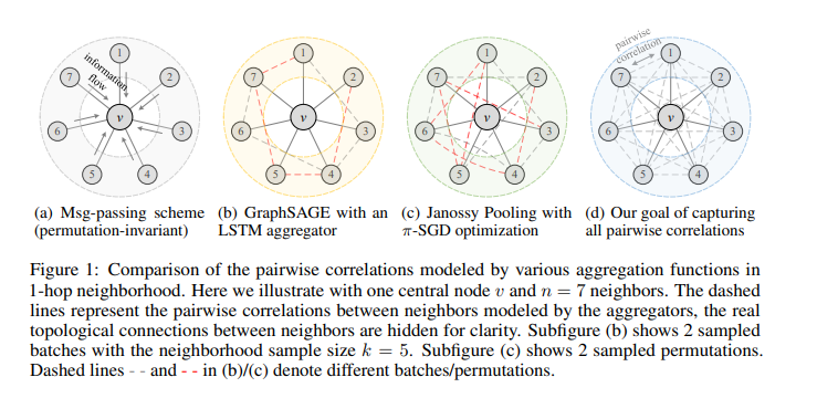 图与邻接矩阵的置换不变性是图神经网络(GNNs)的首要要求,传统模型通过置换不变的聚合操作来满足这一前提条件。然而,这种置换不变的方式可能会忽略邻居与邻居之间的相互关系,进而阻碍GNN的表达能力。为了解决这一问题,本工作利用置换群(permutation groups)设计了一种新颖的置换敏感(与置换不变相反)聚合机制,通过置换采样捕获邻居与邻居之间的成对相关性,从而高效地提升GNN的表达能力:我们证明了所提出的方法严格地比二维Weisfeiler-Lehman(2-WL)图同构测试更强大,并且能够区分一些3-WL测试无法区分的非同构图对;此外,我们还证明了所提出的方法实现了线性的置换采样复杂度。综合而言,本工作通过置换敏感聚合机制设计了一种强大而高效的图神经网络,它在保证表达能力的同时,先后借助近似置换不变性的思想与线性置换采样策略,从而显著降低了计算复杂度。在多个合成数据集和真实数据集上的大量实验验证了所提出模型的优越性。