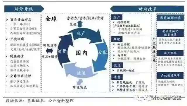 外循环顾名思义就是要保持对外贸易的稳定和增长。外贸一般由商品贸易和服务贸易组成,中国长期处于商品贸易顺差,服务贸易逆差的环境中,未来需要进一步提升服务贸易质量和规模,利好国际物流模块。