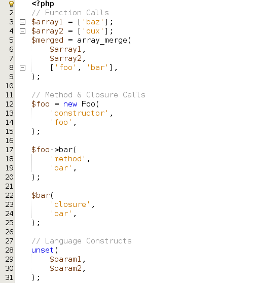 例如,现在在 NetBeans 10 中,使用 PHP 7.3 进行开发时可使用尾后逗号。而对于 PHP 7.2,支持在列表语法中使用尾随逗号。