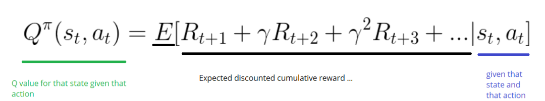 函数 Q(state,action)→返回在当前状态下采取该动作的未来奖励期望。