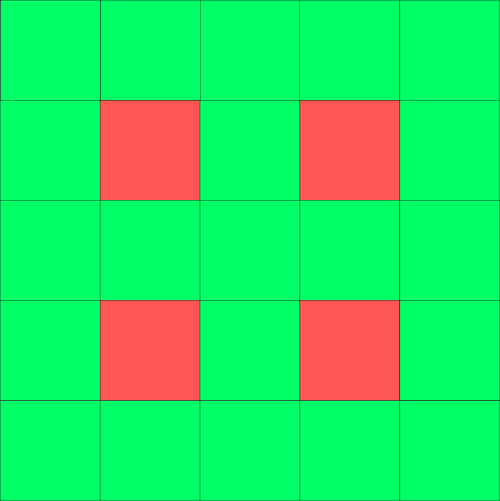 同样的地图,但是被着色了,用于显示哪些方块是可以被安全访问的。
