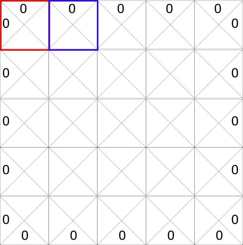 「0」代表不可能的移动(如果你在左上角,你不可能向左移动或者向上移动!)