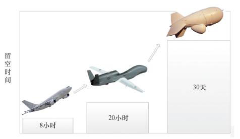 系留气球的能源可以通过与系缆集成在一起的电缆光缆从地面供给,无需气球上携带,与其他飞行器相比大大延长了滞空时间。图5即为系留气球与固定翼飞机的留空时间对比。系留气球可滞空一个月,远远高于载人飞机和无人机不足一天的飞行时间。即使与其他中低空浮空器(lighterthan-air,LTA)相比,在滞空时间上也具有明显的优势。而其一次性滞空多日也实现了持续监控的目的。