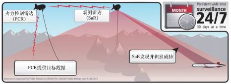 联合对地攻击巡航导弹防御空中组网传感器系统(joint land attack cruise missile defense elevated netted sensor system,JLENS)的主要用途是帮助驻扎在国外的美国军队应对不断增长的巡航导弹威胁,其上安装的雷达能提供超视距监视(图13)。一套JLENS系统由两只系留气球组成,其中一只上装有远程监视雷达,能进行360°监控,同时可跟踪数百个目标;另一只上装有装载了高性能的火控雷达,同时可应对几十个威胁目标,并且两只气球的雷达系统中都有敌我识别询问机。每只气球拴系在一个地面机动系留站上,并通过一根光纤/电力系缆连接到地面处理站。监视雷达进行初期目标探测,然后将数据提供给精准跟踪与照明雷达,后者进行火控精度的跟踪。JLENS系统已经与联合战术体系、联合作战能力、单通道地面/空中无线电系统以及增强定位报告系统集成到一起。