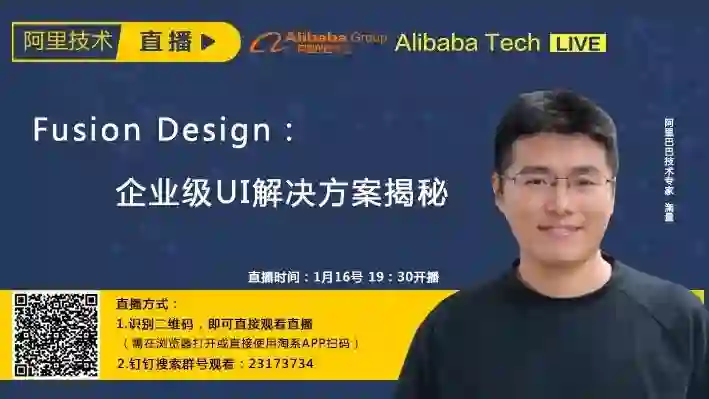 1月16日(周三)晚19:30,欢迎做客阿里技术直播间,共同深入了解Fusion Design。