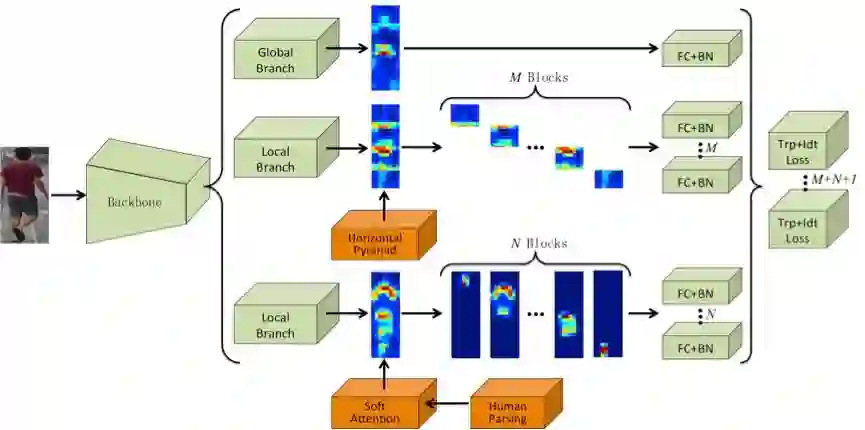 其性能的提高主要来源于技术层面的创新:该团队通过局部信息的挖掘,致力于解决行人在识别过程中表观姿态变化剧烈,不容易对齐的问题。一方面,通过人体语义分割得到具有强语义信息的部件,并利用注意力机制在其中寻找最具有区分性的区域。另一方面,使用了基于金字塔的水平分块策略,得到行人固定区域的可辨识信息。在训练中,同时采用两种策略相结合的方式,达到行人图片的对齐,从而实现更精准的匹配识别。通过技术上的改进,该方法在三个公开数据库上的效果均优于之前最好方法,特别是mAP指标,分别提升了2%,1.87%,3.39%。