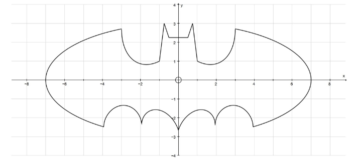 现在,想象一下我们想要计算蝙蝠侠曲线方程(Batman Equation)绘制的形状的面积: