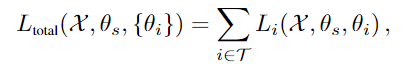 任务间的亲和力以考虑一个任务对共享参数的连续梯度更新在多大程度上影响网络中其他任务为目标,并且所有任务的亲和力相加作为整体任务的亲和力,其中Li代表任务i的损失。