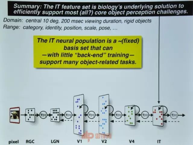 那么总结来说,IT 的特征空间就是生物识别能力的潜在基础,借助简单的线性分类应对多数甚至全部物体识别中的挑战。IT神经群就是一个相对固定的基础特征集,几乎不需要反向训练就可以用于完成许多物体相关的任务。