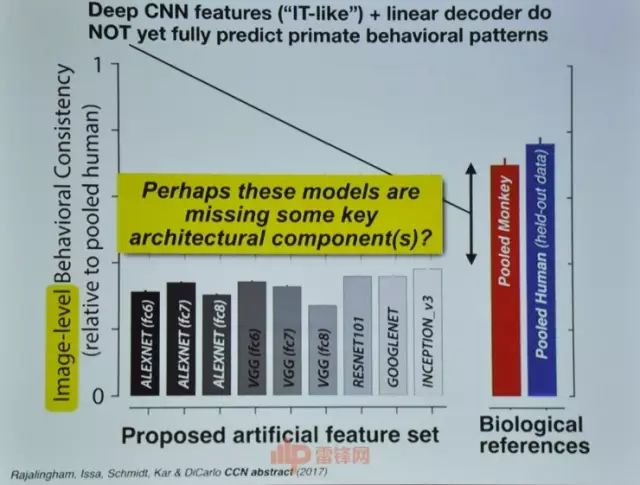 到了2013年的时候,当时风靡的深度神经网络AlexNet的识别表现和对 IT 神经细胞响应的解释能力都已经超过了他们的 HMO。教授这时也发自内心进行了感谢,深度神经网络方面的技术发展、建立的优秀的模型帮助神经科学家更好地了解人类大脑中的原理。