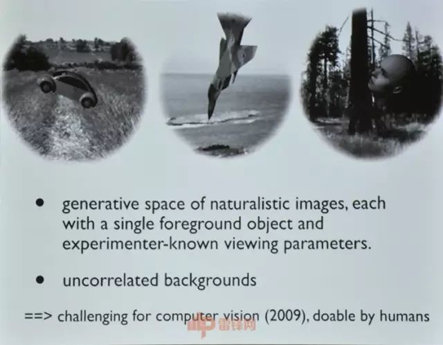 教授在研究中进行测试时使用的是生成的图像,在不相关的背景下放置不同观察角度的物体。之所以这样选择的原因是,当他开始研究时,同时代的CV系统很容易被不相关的背景扰乱识别结果,但是人类就不会受到什么影响;另一方面,CV系统对于更多姿态和变化时的识别有更大困难,但是人类表现得也很好,体现出了视角无关性,所以他认为这样的图像可以更好地展现出人类视觉系统的特点。