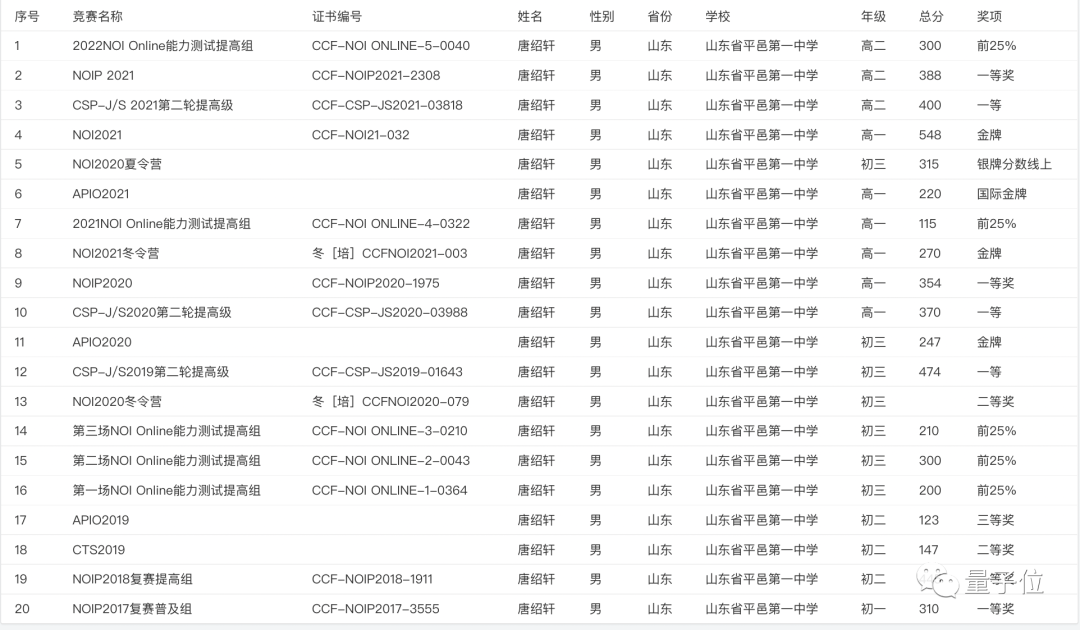 高一时,张隽恺又拿到第36届全国中学生信息学奥林匹克决赛(NOI 2019),正式保送清华大学姚班。