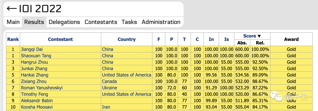 值得一提的是,有两位队员以两试均满分、总分600分的成绩摘得金牌榜并列第一。