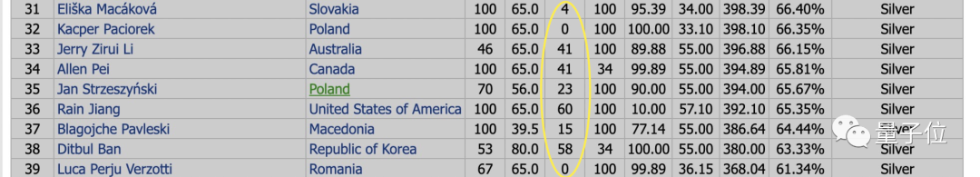 而银牌得主名单里,有好几个人别的题上拿满了100分,在这道题上却遭遇滑铁卢,只有4分,甚至0分。